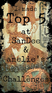 MANY THANKS to everyone who entered our May challenge! It is always so difficult for the DT to pick the Top 5 from all of the awesome entries, because we truly are inspired by the creativity of each and every one of you. We are so happy to have all of you playing along with us at SASPC - you rock our little steampunk universe!